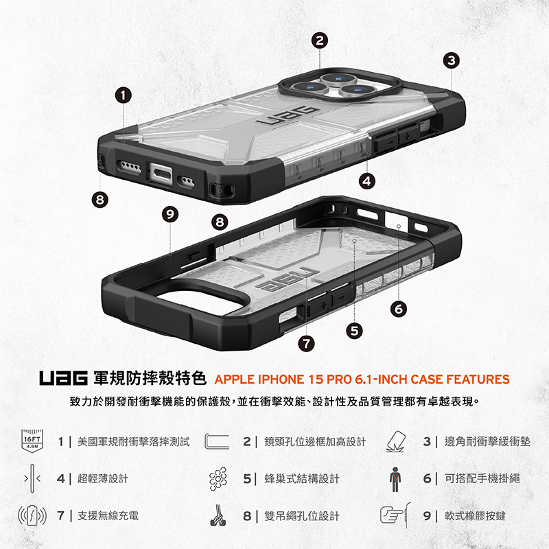 UAG iPhone15 Pro (6.1") 美國軍規耐衝擊保護殼 (2色)