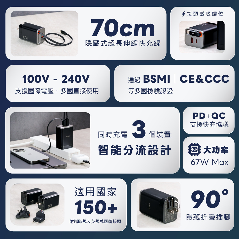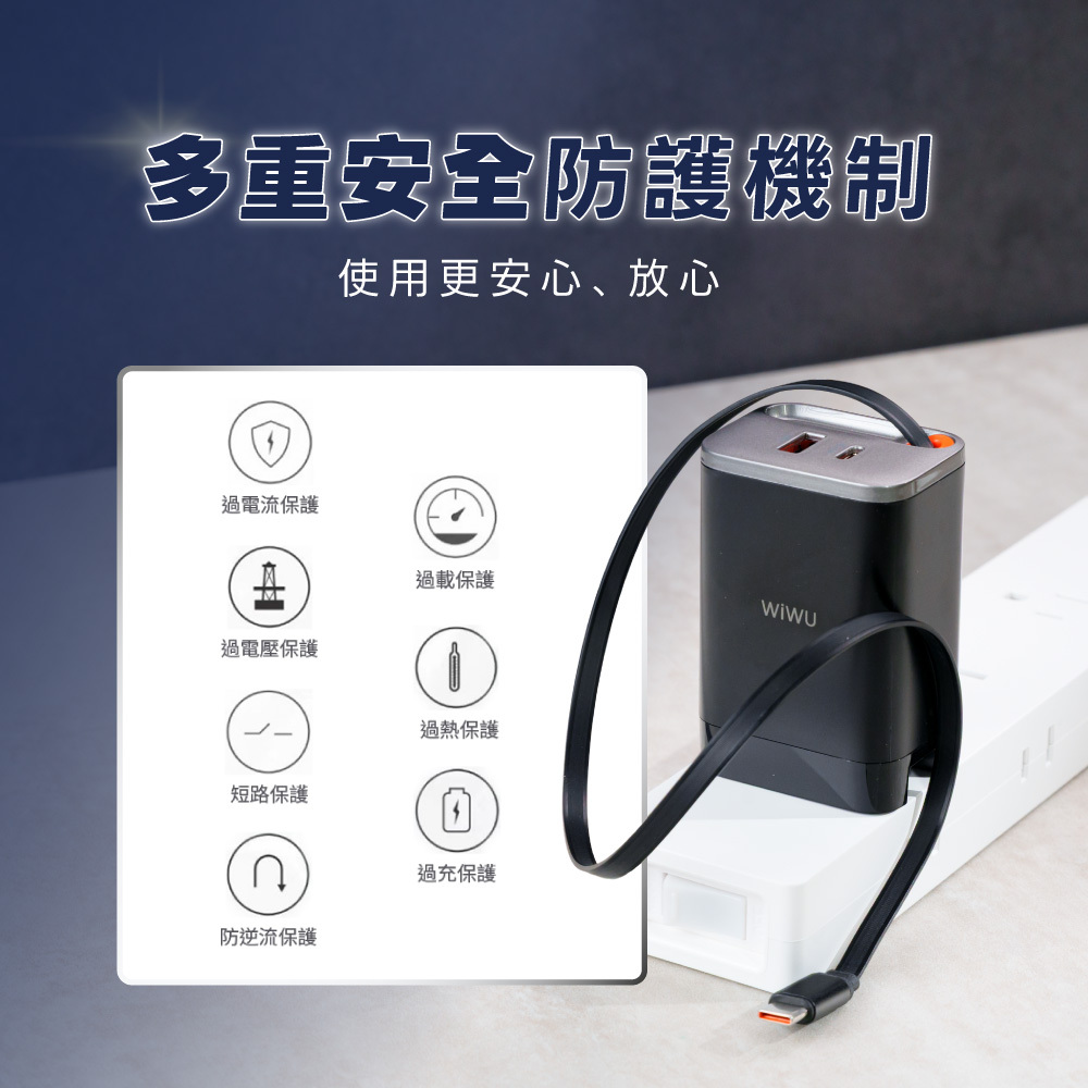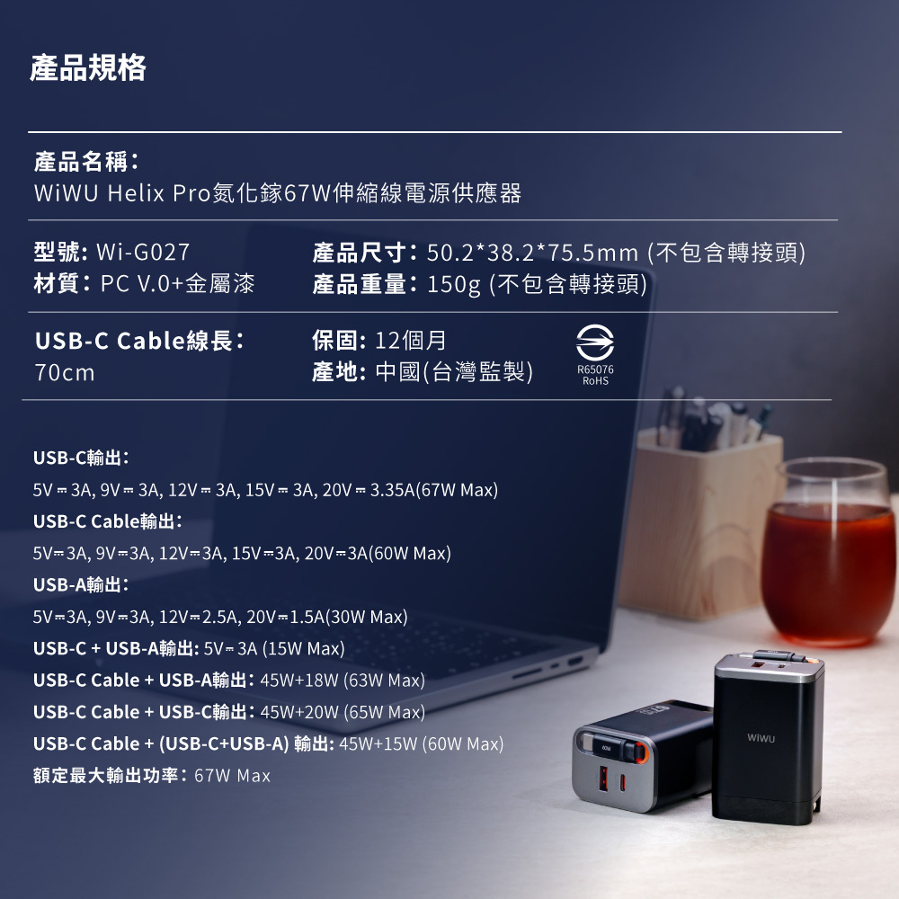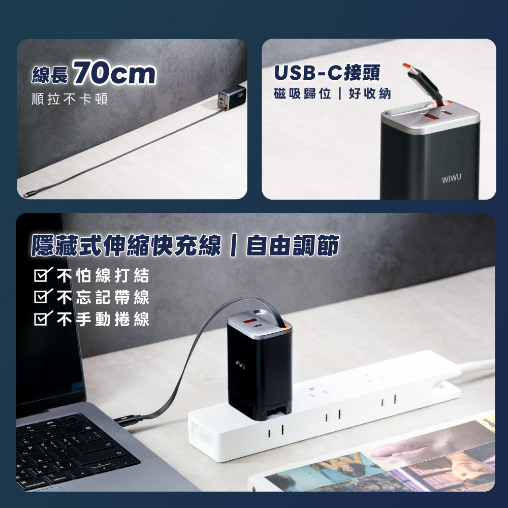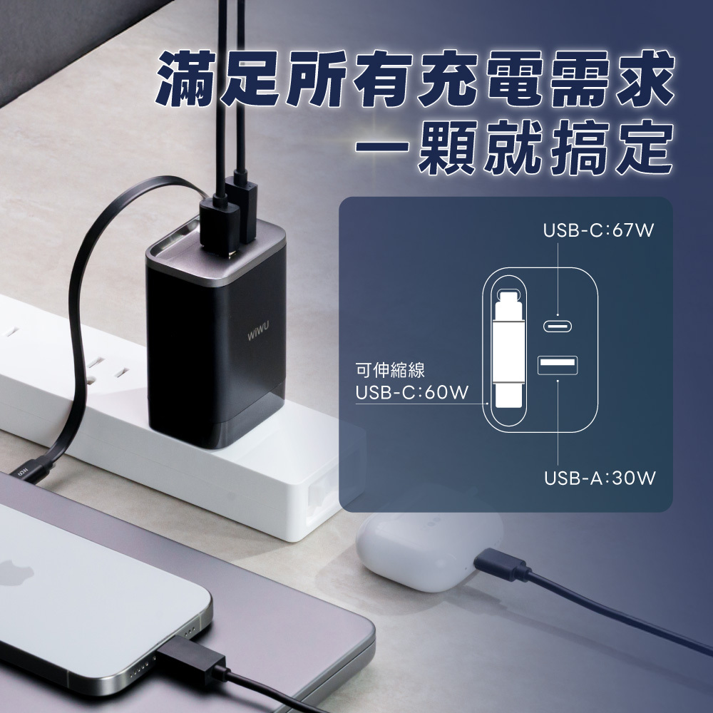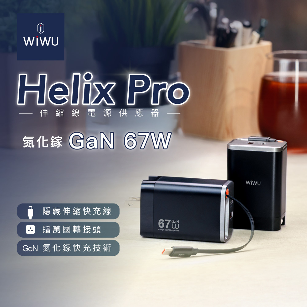 WiWU Helix Pro 氮化鎵67W 伸縮線電源供應器