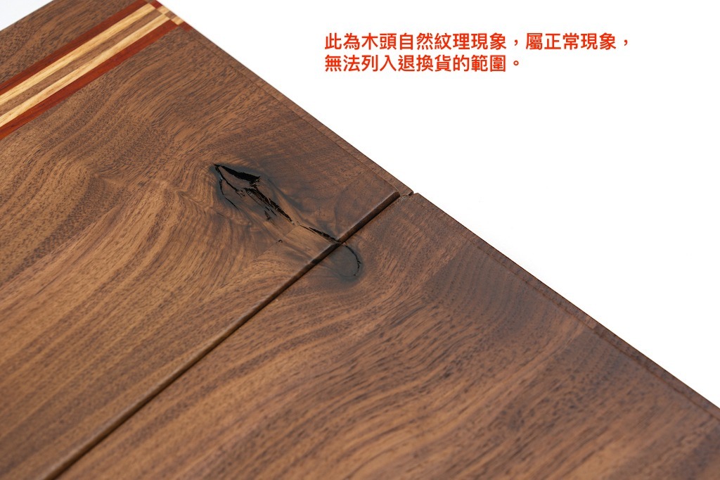 1.皆為天然實木製作,必定會有不規則木紋、木斑、木結、毛孔或色差等木料的自然紋理及現象,也是實木產品的獨特之處,故此因素無法列入退換貨的範圍。