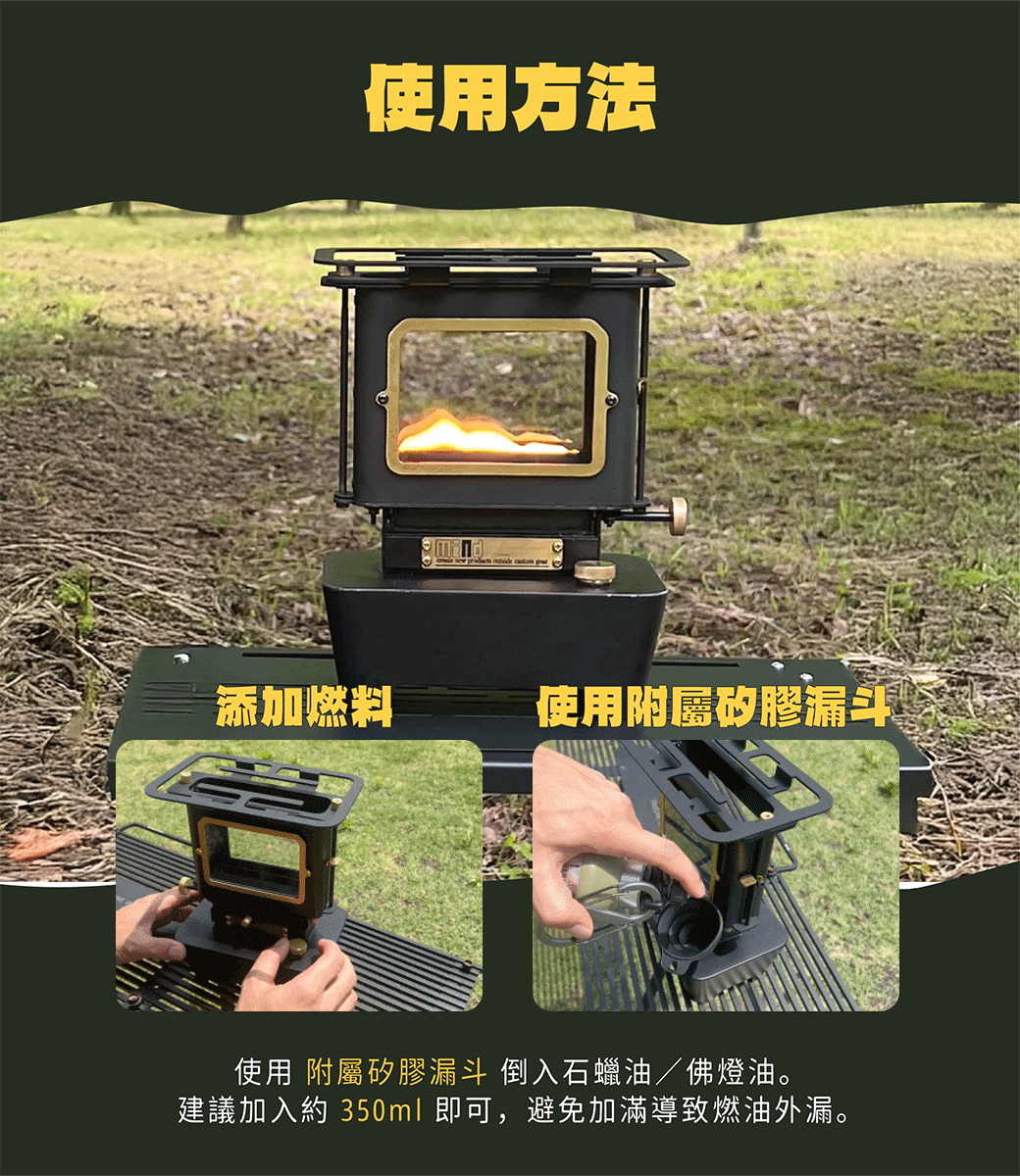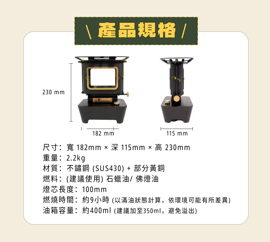 ●復古設計:經典的油燈爐造型,搭配現代技術,呈現獨特美感。