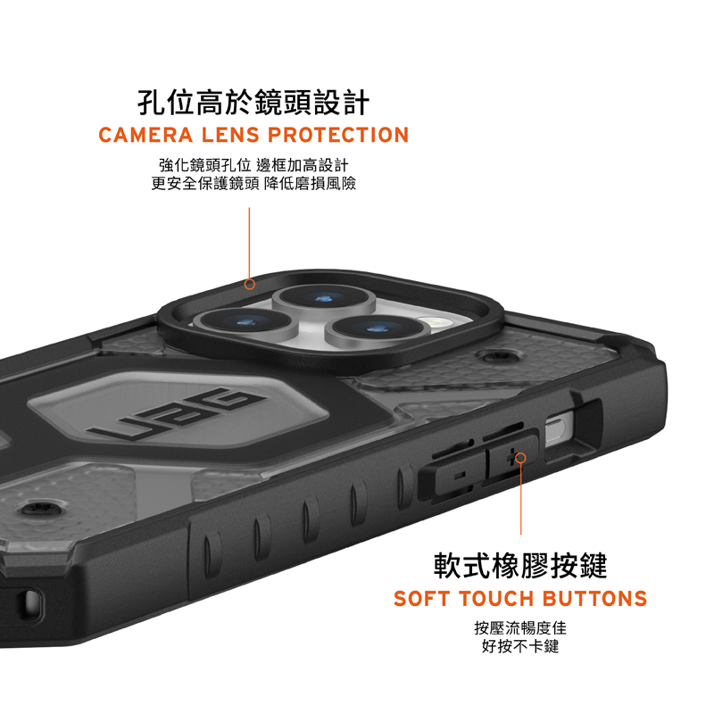 ●強化鏡頭孔位,邊框加高設計